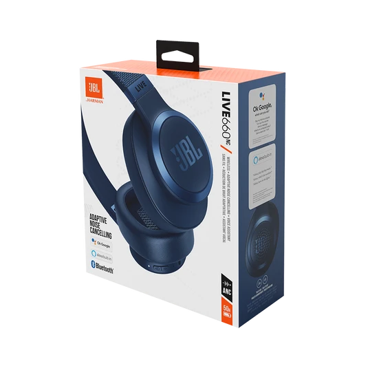 In your world, music is essential, so slip on a pair of JBL Live 660NC and elevate your day. Blasting powerful 40mm drivers, the JBL Live 660NC headphones deliver JBL Signature Sound punctuated with enhanced bass, so every track pops. And when the music is the only thing that matters, the Adaptive Noise Cancelling technology allows you to block-out ambient sounds so nothing disturbs your groove. Ambient Aware keeps you safe while walking in the streets with your music on and TalkThru allows you to have quick chats without removing your JBL Live 660NC. Need some help getting through the day? Get help from Hey Google (*) or Alexa (**) through your voice or with a tap on the earcup. Activate ANC or Ambient Aware, check the battery life or power off your JBL Live 660NC simply with your voice with Hey Google (*). Magic! Lightweight and comfortable thanks to the pillow-soft padded headband, you’ll enjoy up to 50 hours of music streaming with ANC off, perfect stereo calls and a convenient detachable audio cable, that lets you rock on even when the battery goes off. When not in use, your Live 660NC automatically pause and resume playing when picked up again. Rock out while staying tuned in with the JBL Live 660 NC headphones.