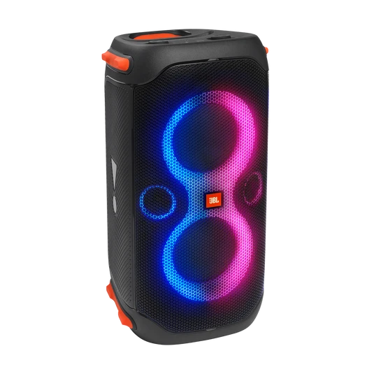 Bring a whole new dimension to any party with the unique dynamic LED lightrings, synced to the powerful sound and deep bass of the PartyBox 110. Take the PartyBox wherever you go with the splashproof design and plug in a guitar and mic for the ultimate immersive experience. With Bass Boost and loud, powerful JBL Original Pro Sound, your friends won’t just hear the music, they’ll feel it as 12 hours of playtime keeps the party rocking all day or night. Use the PartyBox app for total control as you stream your tunes wirelessly.