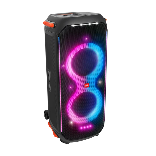 The splashproof PartyBox 710 transforms your next event into a real party, concert or nightclub. With its unique and colorful light show synced to JBL Original Pro Sound. Minimalistic and intuitive top panel controls and the PartyBox App let you create next-level musical and visual experiences. Customizing both the flashing, strobe lights and the amazing sound from the dual set of tweeters and bass-rich woofers. One-button True Wireless Sound instantly pairs two PartyBox 710s for an even bigger crowd. And with an easy-to-grip handle and robust wheels, you can keep the good times rolling wherever the party goes.