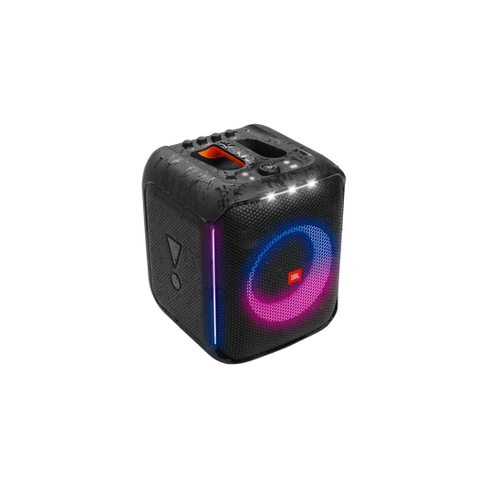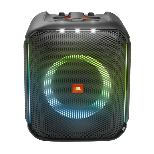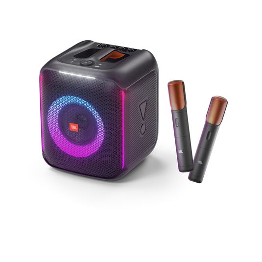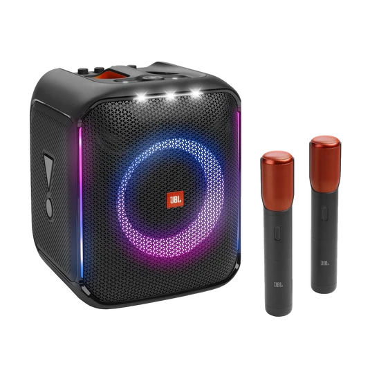 The portable JBL PartyBox Encore speaker gives you 10 hours of non-stop fun. With the easy grab-and-go handle and splash proof design, you can always take the party with you. Get the beat pumping with amazing JBL Original Pro Sound and deep bass. Sync the lightshow’s rockin’ strobes, ring and club lights for an awesomely immersive experience or sing along with the JBL premium digital wireless mics, optimized for karaoke with adjustable echo, bass, and treble. True Wireless Stereo means you can even pair speakers for truly massive sound. And with the PartyBox app, you can always control your music and your lightshow colors for the perfect vibe.