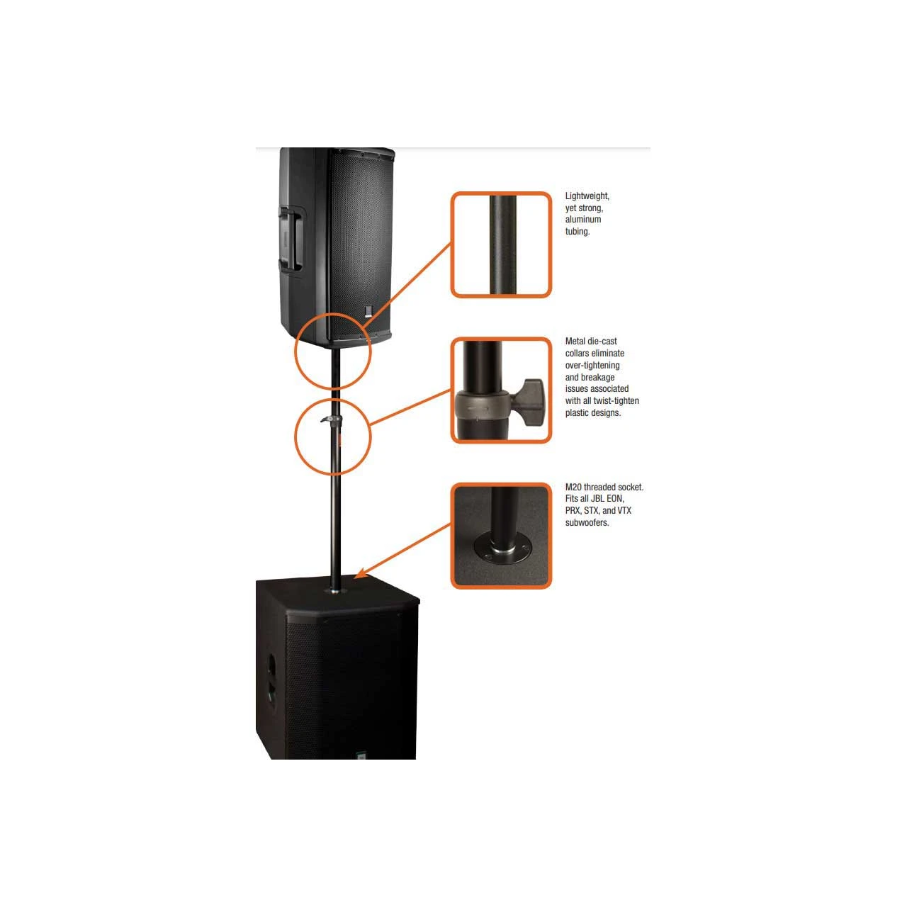 Manual Adjust Speaker Pole with M20 Threaded Lower End, 38mm Pole & 35mm. The JBL POLE-MA features an amazing height adjustment collar that features an ergonomic “Z” knob that provides comfortable adjustment. The strongest fitting made, the height adjustment collar prevents over- tightening and breakage issues associated with all plastic designs.