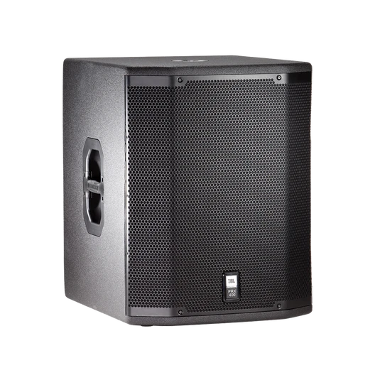 PRX418S is an eighteen inch subwoofer which, when combined with the two-way models, provides a sub/sat system capable of generating 135 dB of full-range, high quality audio. PRX400 passive speakers were designed to provide the sensitivity, frequency response and power handling needed to address a multitude of demanding audio environments while still being reasonably priced. For musicians, DJ’s, House of Worship, public address, or suspended in a commercial environment like a school or nightclub, they can be used with a powered mixer or a full rack of amps and signal processing, delivering the sound power and bandwidth necessary to make loud music sound natural and even quiet speech intelligible. Comprised of tour tested JBL components in rugged enclosures with professional connectors and suspension points, three 2-way designs and an 18″ sub-woofer tackle tough jobs affordably and professionally.