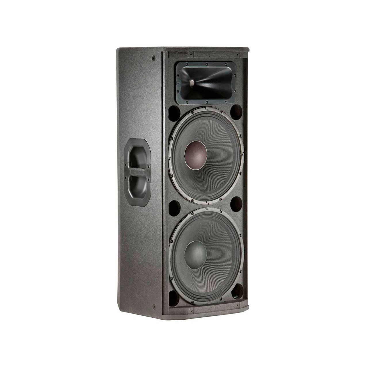 Dual 15″ two-way passive speaker system; 2400 Watt peak power handling , 134dB Maximum SPL , 4 ohms. DuraFlex-covered 18mm plywood enclosure, 16 gauge cloth-backed steel grille, dual 36 mm pole sockets, non-skid rubber feet. 12 M10 suspension points. Net Weight 33.5kg (74 lbs.)