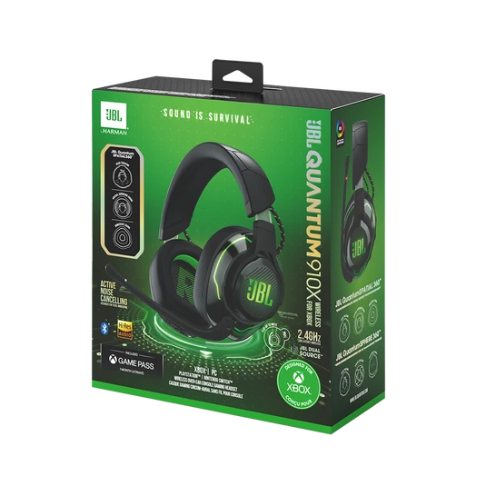 The JBL Quantum 910X Wireless for Xbox delivers precise, dual spatial, hi-res audio with integrated head tracking to keep you in the center of the action. Ideal for Xbox, also works with PlayStation, Nintendo Switch and PC. The low latency wireless connection means zero lag when talking to the squad, and Active Noise Cancelling lets you play without distractions even in the noisiest places. The JBL Quantum 910X Wireless for Xbox features up to 37 hours of battery, but you can even charge while you play during marathon sessions. And with unparalleled ergonomic comfort…you’re gonna have marathon sessions.