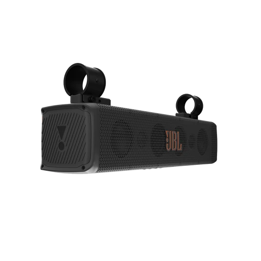 JBL RALLYBAR S is a IP66 rated water resistant Bluetooth® Soundbar with 150Wrms amplifier and extraordinary sound experience to UTVs, golf carts, boats and other vehicles built for recreation. Each RALLYBAR S can be used by itself or connected to multiple RALLYBAR S or RALLYBAR S family products (RALLYBAR, RALLYBAR S and RALLYBAR XL) by using its built-in broadcast mode. The innovative mounting kits design (patent pending) offers multiple position combinations on top and back to accommodate a variety of installation requirements. Bluetooth®, USB disk and Aux-in audio players are supported. HI-Resolution Audio for AUX-IN input audio source is available.