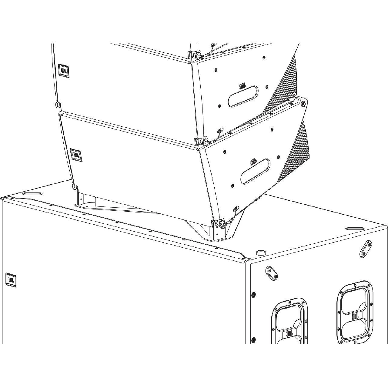 The JBL SRX910LA Base Plate is a universal adapter frame that enables SRX910LA arrays to be ground stacked on top of compatible subwoofers or support structures such as stages, scaffolding, or carts. Using the included M20 screw, the SRX910LA BP connects to any supported subwoofer equipped with a standard M20 pole mount adapter, such as the SRX928S. The rear angle selection bar allows for angles ranging from -15 to +5 degrees. The three included M10 through-holes can be used to permanently attach an SRX910LA array to other support structures. Configurations and load conditions for using the SRX910LA BP can be obtained using JBL Line Array Calculator 3 software. For more information about the base plate and use cases refer to the SRX900 Series Rigging Manual.