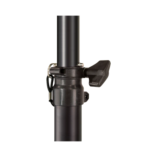 Aluminum Tripod Speaker Stand with Secure Locking Pin and 150 lbs Load Capacity. To assist you in lifting your speaker, we’ve added a durable Lift Ring on the telescoping tube to give your upper hand something to push against when raising the speaker to the desired height.