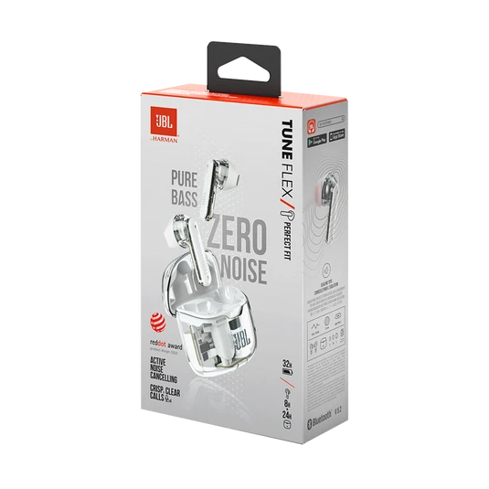 Tackle your day one song at a time with the JBL Tune Flex. These true wireless earbuds give you up to 32 hours of exceptional JBL Pure Bass Sound, while the ergonomic and water-resistant design gives you all-day comfort in any weather. A simple touch allows you to manage and enjoy perfect calls anywhere, without ambient noises. And with Active Noise Cancelling and Smart Ambient technology, you choose whether you want to tune out the world or engage with your surroundings. The light stick open design ensures comfort all-day long and natural sound awareness. Best of all, the JBL Headphones App lets you personalize your entire listening experience. Stay connected to your world, your way.